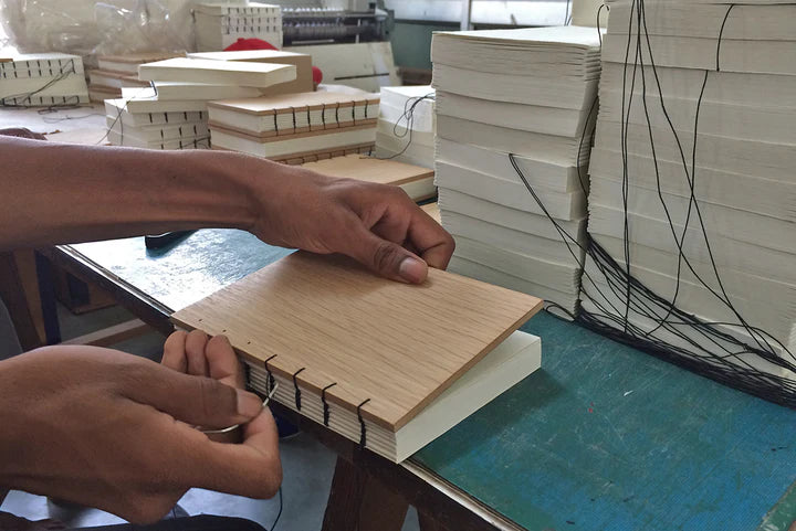 Ordered seven variants of these for friends and myself, and the quality and value for money is great. The journals are a perfect size (56 leaves, 112 pages) to make an aesthetic photo book from. They take ink and glue well, and may also take art pigment with their lovely texture. The dual (inner and outer) cover tones and bags are an added bonus. Thank you Rickshaw Recycle for these elegant sustainable pieces - I look forward to more variants!