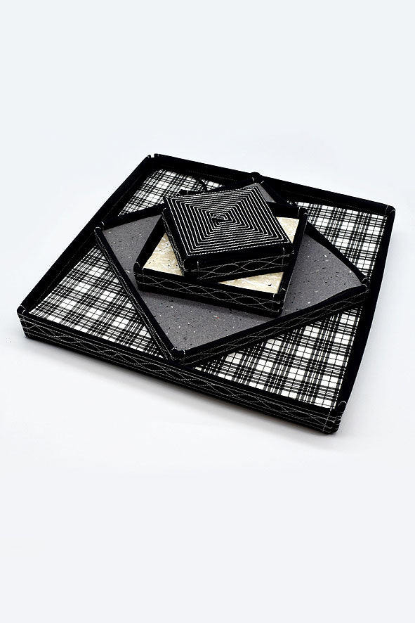 Assorted Black Handmade Paper Kits with Fabric Trays, Origami, Set of 30cm, 21cm, 15cm & 10cm
