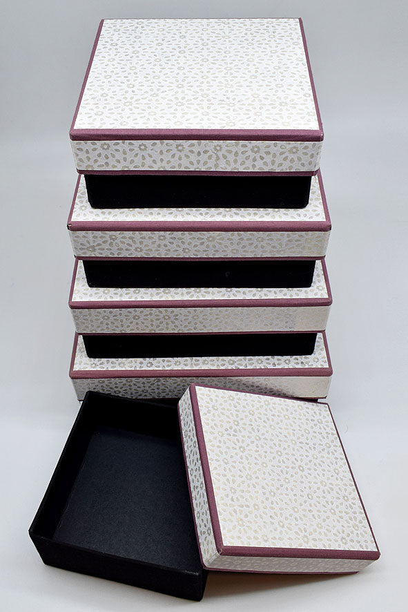 Fabric Clad Square Gift Boxes with White Block Print Lid, Dull Rose