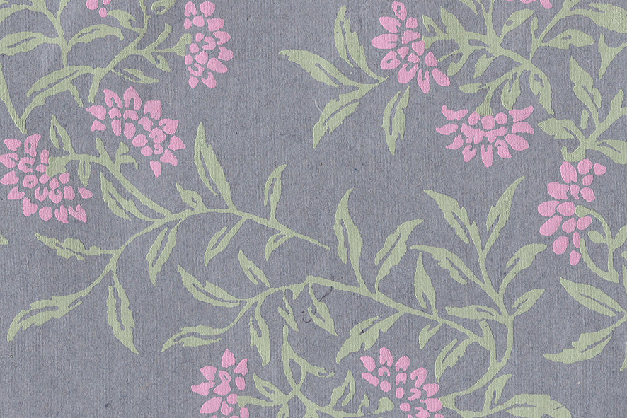 Flower Vines: Pink & Green on Blue Handmade Paper ~100gsm 50X70cm each