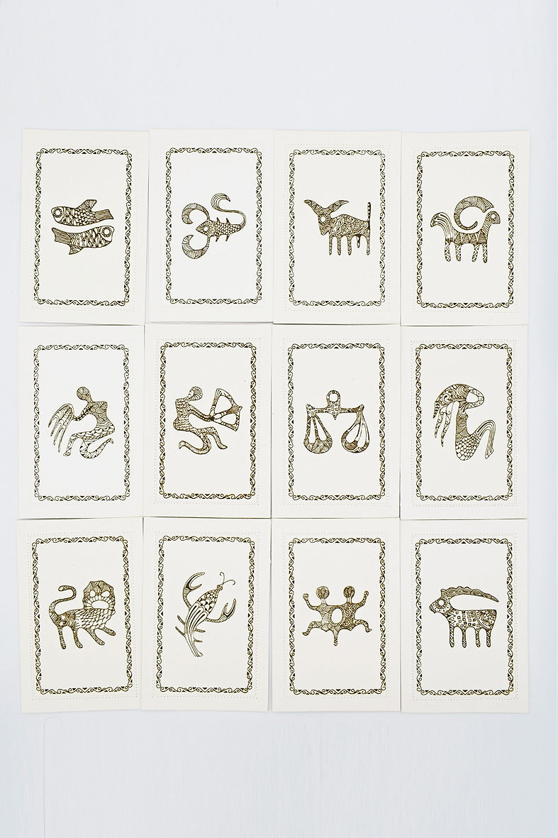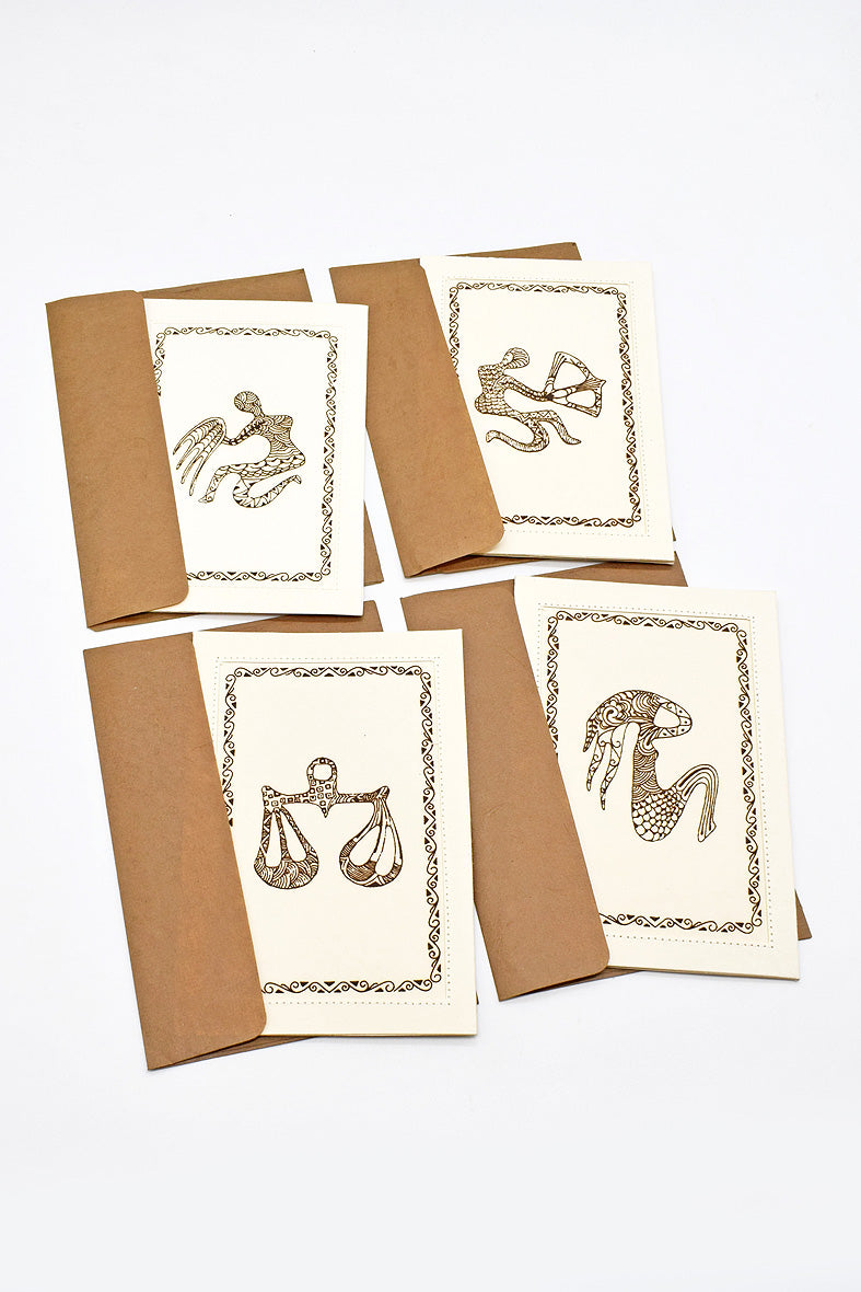 Henna Printed Rashi Sign Cards with Envelopes, Set of 12 Signs, A6