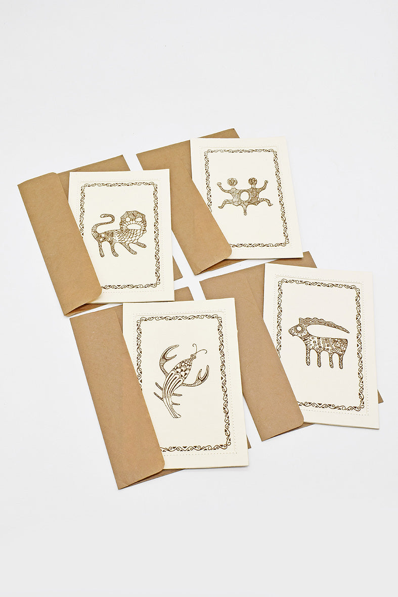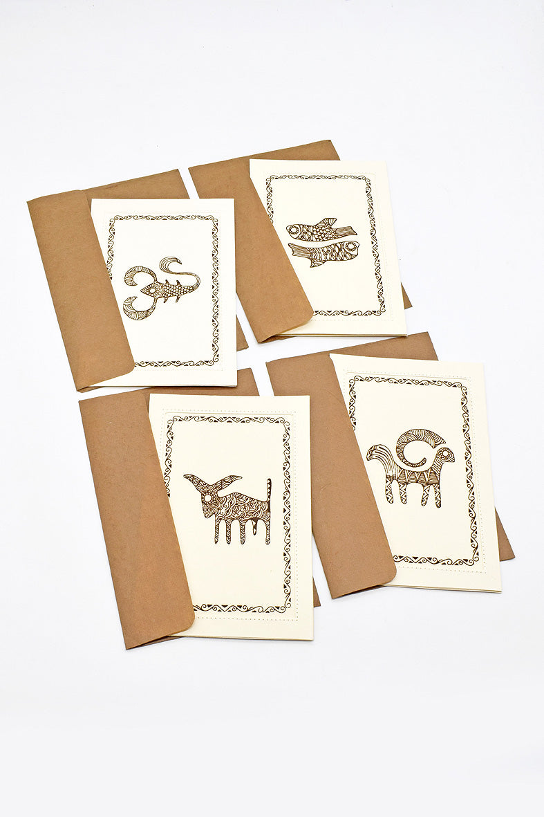 Handmade Cotton Rag Paper Cards, Banana Fibre Paper Envelopes, Mehndi Print