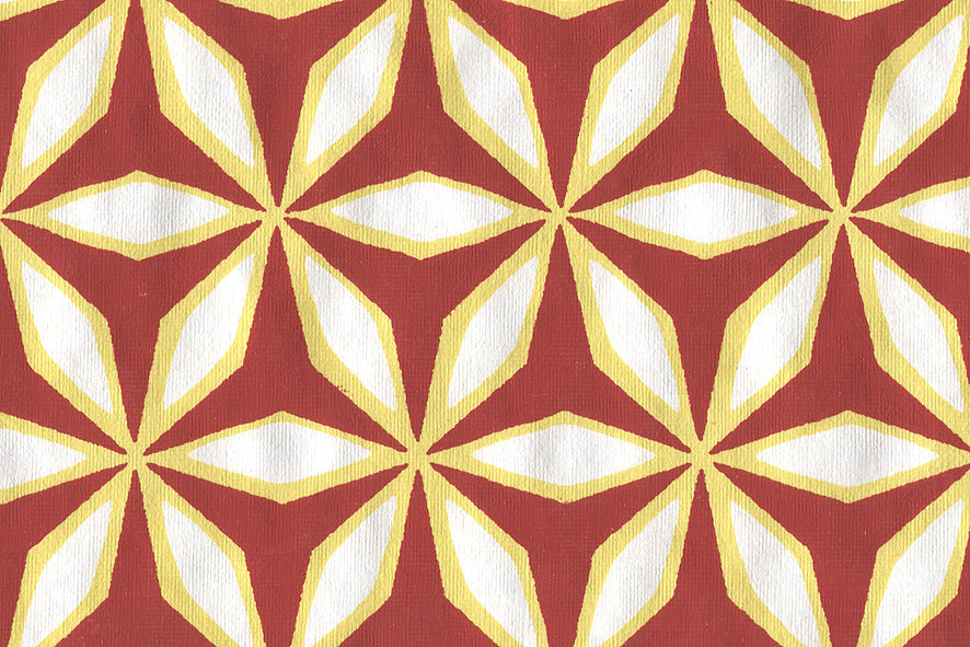 Hexagon & Petal Outlines: Red-Yellow on White Handmade Paper ~100gsm Set of 5 56x76cm each