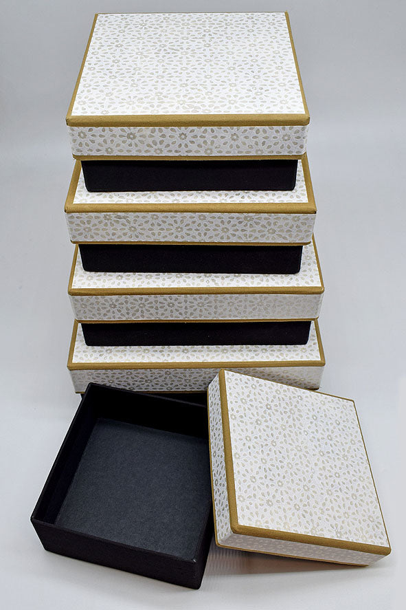 Fabric Clad Square Gift Boxes with White Block Print Lid, Khaki